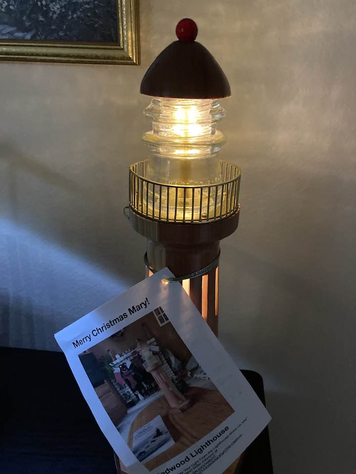 candle in the glass holder where the "light room" at the very top would be on a real lighthouse.