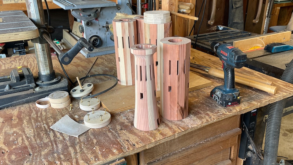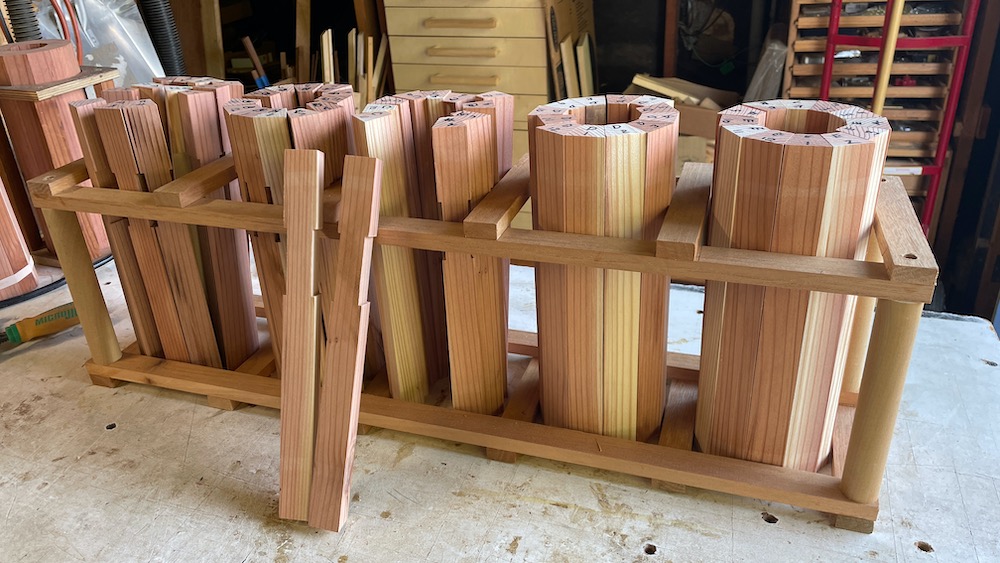 As you can see in the photo on the right, the raw tower is a glue-up of 12 strips of