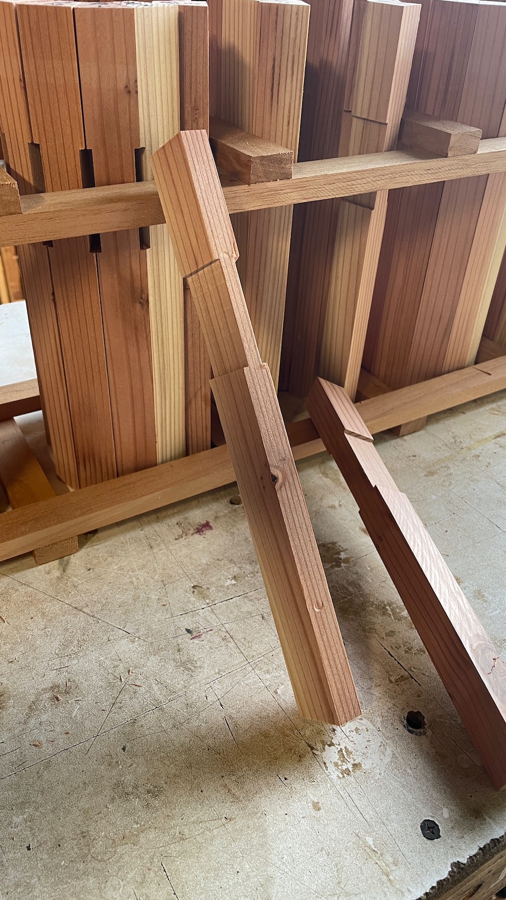 repair. The wood is all California Redwood, showing the red heartwood and some of the white